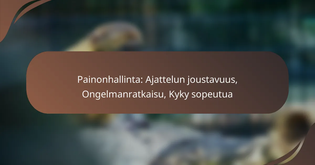 Painonhallinnassa ajattelun joustavuus, ongelmanratkaisu ja kyky sopeutua ovat keskeisiä tekijöitä. Nämä taidot auttavat yksilöitä mukautumaan muuttuviin olosuhteisiin, tunnistamaan esteitä ja kehittämään käytännön strategioita tavoitteidensa saavuttamiseksi. Joustava ajattelu mahdollistaa käyttäytymisen muutoksen ja tukee pitkäaikaista menestystä painonhallinnassa.