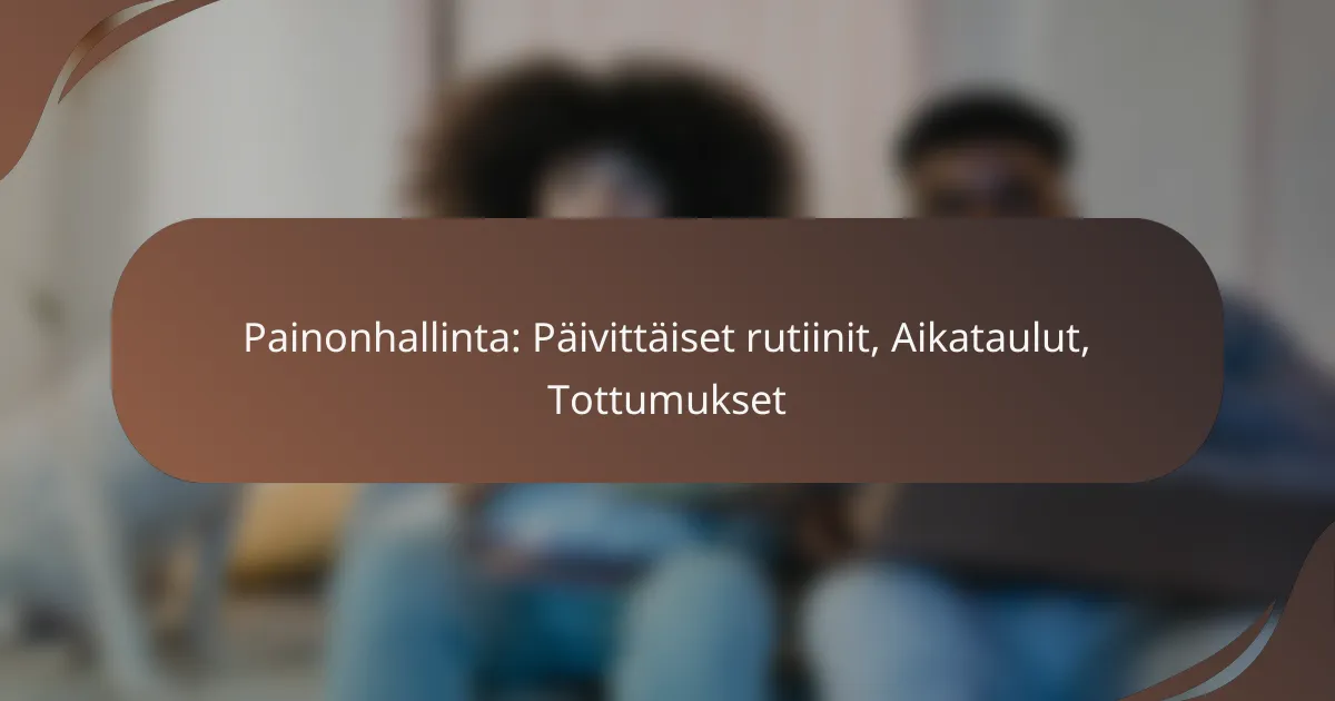Painonhallinta vaatii tehokkaita liikuntatottumuksia, päivittäistä aktiivisuutta ja kestäviä elämäntapamuutoksia. Säännöllinen ja monipuolinen liikunta auttaa kuluttamaan kaloreita ja parantamaan hyvinvointia, kun taas aktiivinen elämäntapa tukee terveellisen painon ylläpitämistä. Lisäksi ravitsemus, uni ja stressinhallinta ovat keskeisiä tekijöitä, jotka vaikuttavat painonhallintaan pitkällä aikavälillä.