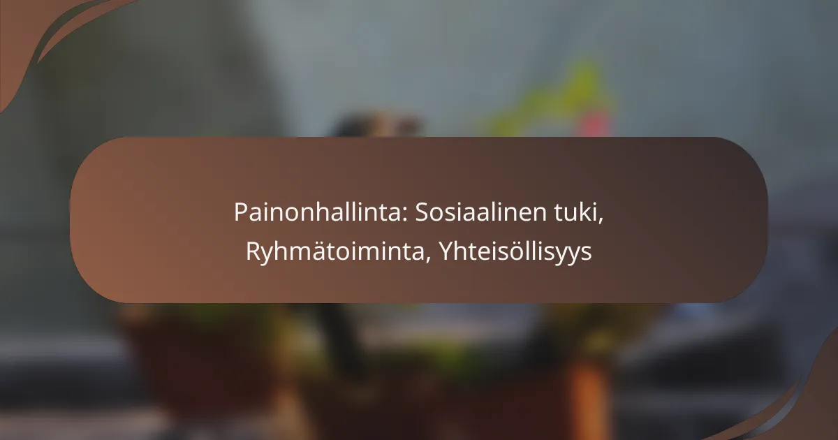 Painonhallinta on monivaiheinen prosessi, jossa ravitsemus, liikunta ja sosiaalinen tuki yhdistyvät. Yhteisöllisyys ja ryhmätoiminta tarjoavat tärkeää tukea, auttaen yksilöitä saavuttamaan ja ylläpitämään painonhallintatavoitteitaan. Sosiaalinen tuki ystäviltä ja perheeltä voi merkittävästi parantaa motivaatiota ja sitoutumista terveellisiin elämäntapoihin.